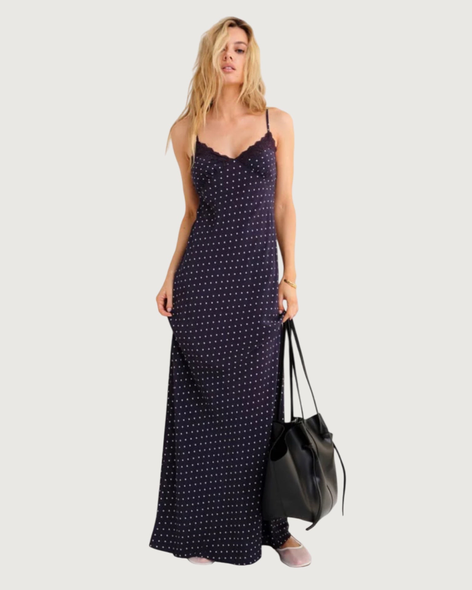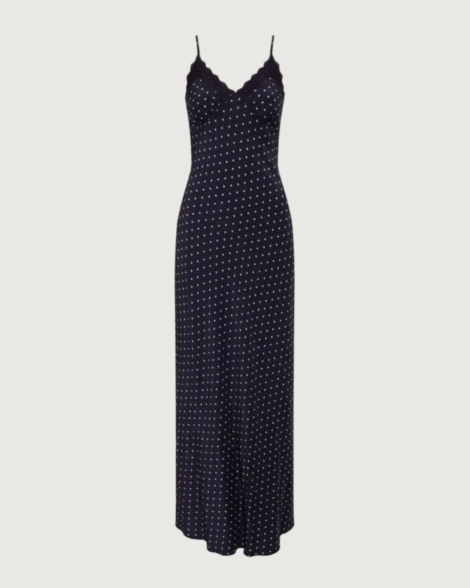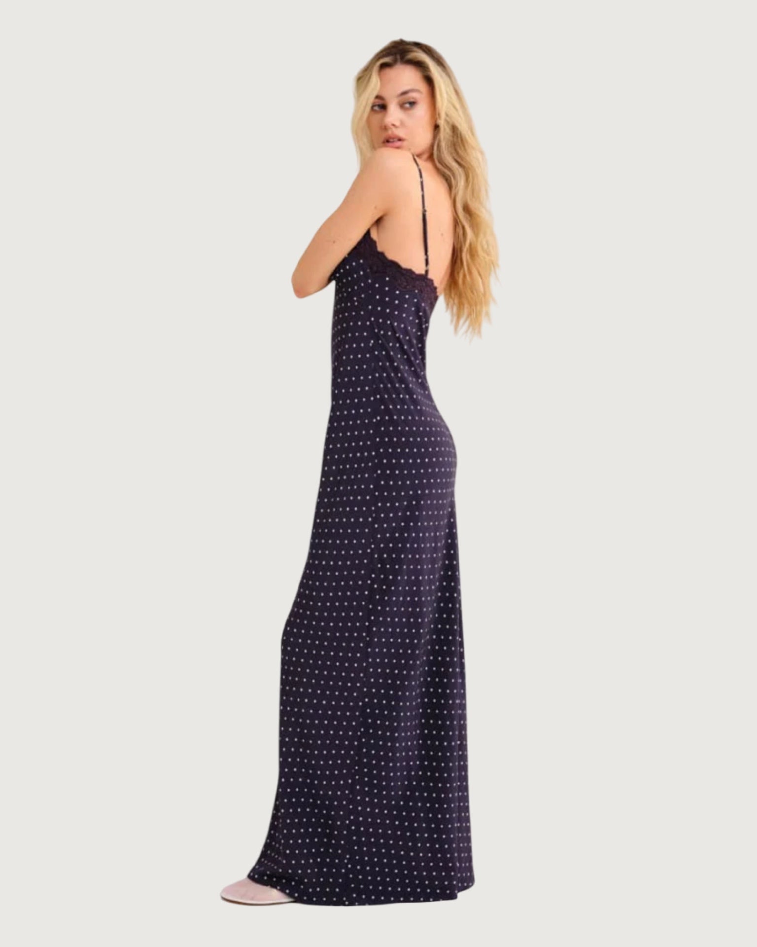 coastal dot- navy with cream polka dots, lace trim detail, adjustable straps