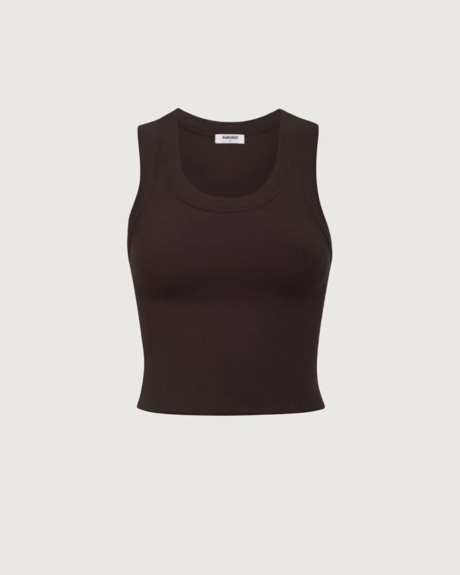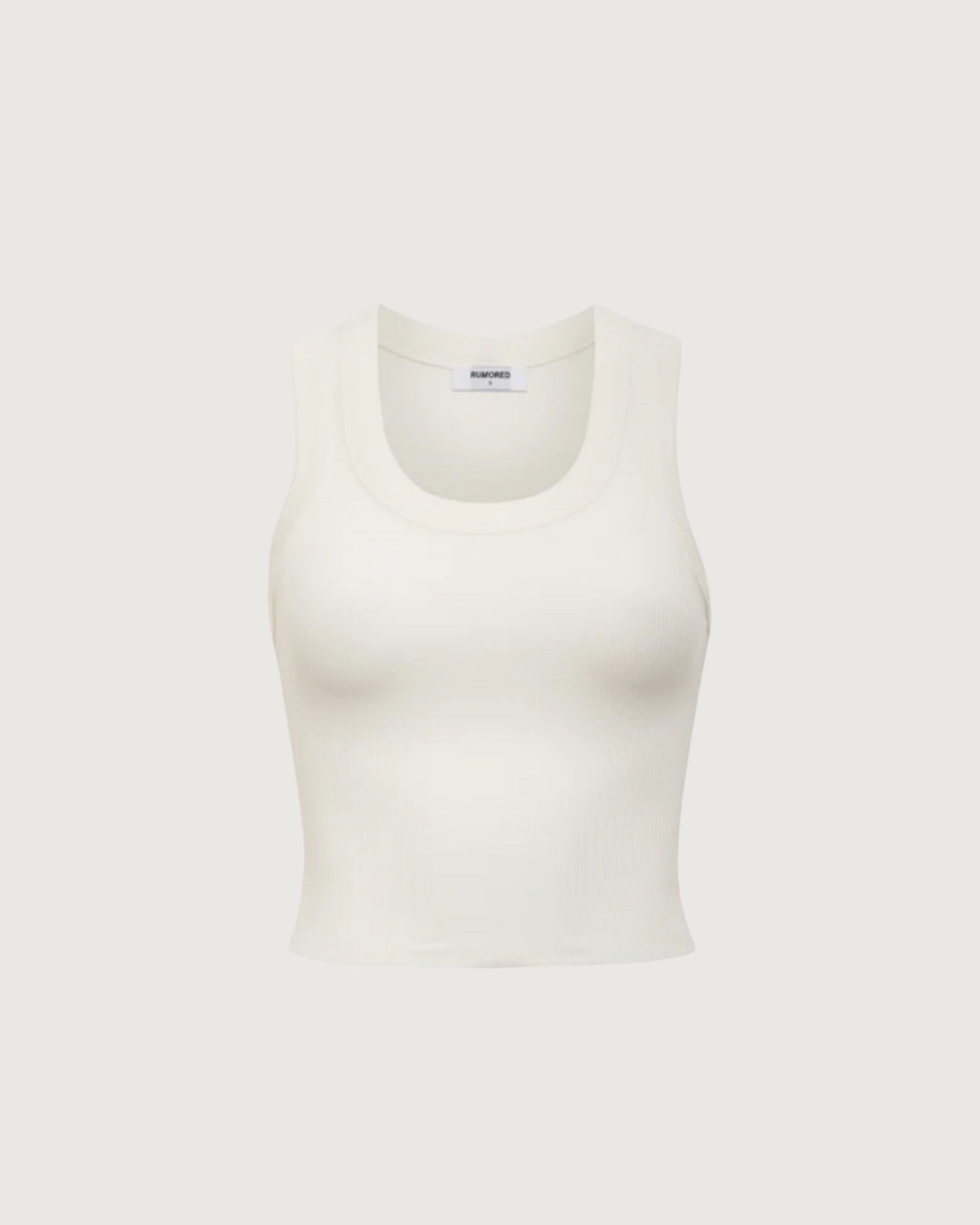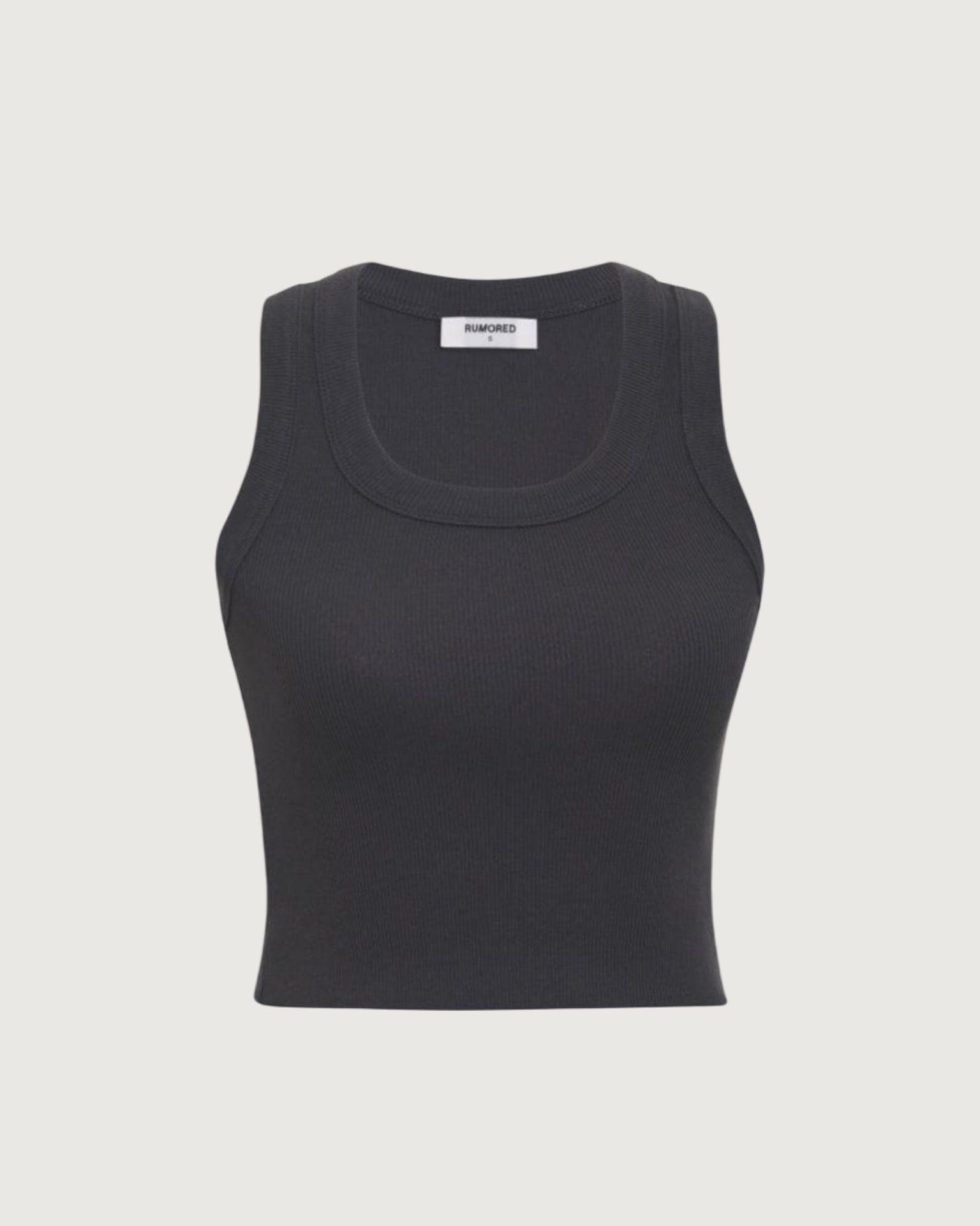 wide binding neck and armhole trim, heavy weight ribbed fabric, lots of stretch and compression, raw hem